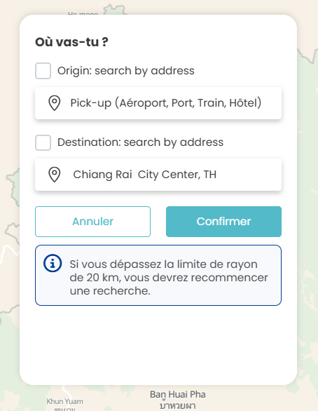 Le système est encore en cours de développement et toutes les destinations ne sont pas encore ajoutées. Merci de contacter le chat afin de faire une demande d’ajout. La destination est généralement créée sous 24/48h.